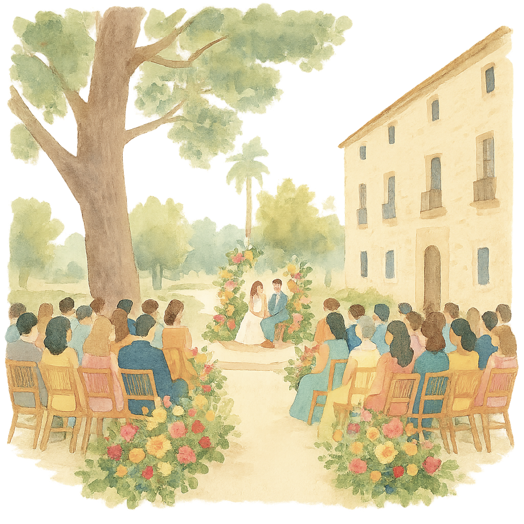 Den Tag über habt ihr Zeit, Palma auf eure eigene Weise zu genießen – beim Frühstück am Meer, beim Bummeln durch die Altstadt oder einfach beim Nichtstun in der Sonne. Spätestens um 16:30 Uhr bringen euch zwei Busse zur Finca Morneta, wo wir unsere Trauung feiern. Und ab dann: einfach zurücklehnen, genießen und euch überraschen lassen.
